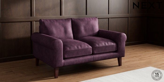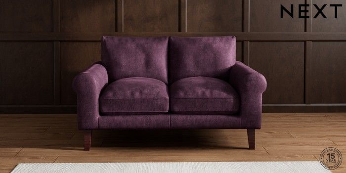 7.2.10 Palermo Relaxed Sit 2 Seater Small Sofa Plush Chenille Dark Plum Purple Tapered - Dark Brown | Made Click here to use our website with more accessibility support, for example screen readers