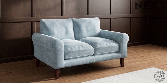 7.2.10 Palermo Relaxed Sit 2 Seater Small Sofa Plush Chenille Light Blue Tapered - Dark Brown | Made Click here to use our website with more accessibility support, for example screen readers