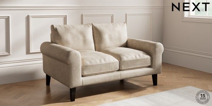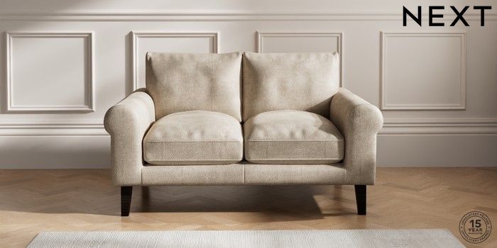 7.2.10 Palermo Relaxed Sit 2 Seater Small Sofa Plush Chenille Light Natural Tapered - Dark | Made Click here to use our website with more accessibility support, for example screen readers