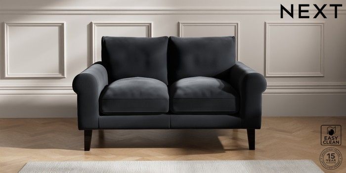 7.2.10 Palermo Relaxed Sit 2 Seater Small Sofa Plush Velvet Easy Clean Charcoal Grey Tapered - Dark | Made Click here to use our website with more accessibility support, for example screen readers