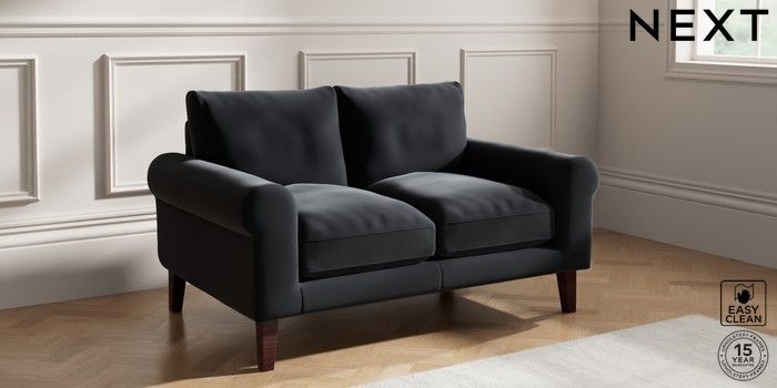 7.2.10 Palermo Relaxed Sit 2 Seater Small Sofa Plush Velvet Easy Clean Charcoal Grey Tapered - Dark Brown | Made Click here to use our website with more accessibility support, for example screen readers
