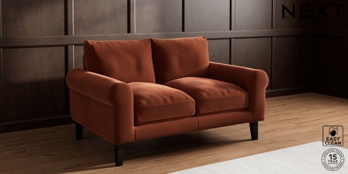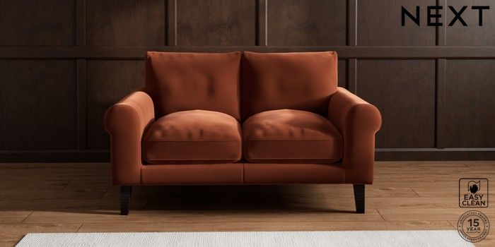 7.2.10 Palermo Relaxed Sit 2 Seater Small Sofa Plush Velvet Easy Clean Ginger Orange Tapered - Dark | Made Click here to use our website with more accessibility support, for example screen readers