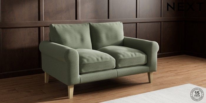 7.2.10 Palermo Relaxed Sit 2 Seater Small Sofa Relaxed Linen Look Dark Green Tapered - Light | Made Click here to use our website with more accessibility support, for example screen readers