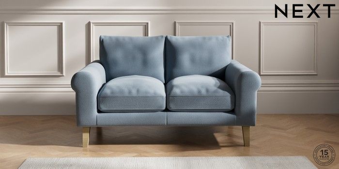 7.2.10 Palermo Relaxed Sit 2 Seater Small Sofa Relaxed Linen Look Mid Blue Tapered - Light | Made Click here to use our website with more accessibility support, for example screen readers
