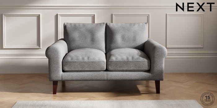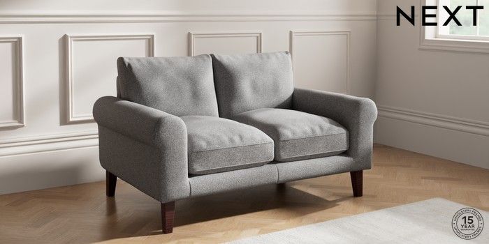 7.2.10 Palermo Relaxed Sit 2 Seater Small Sofa Studio Chenille Mid Grey Tapered - Dark Brown | Made Click here to use our website with more accessibility support, for example screen readers