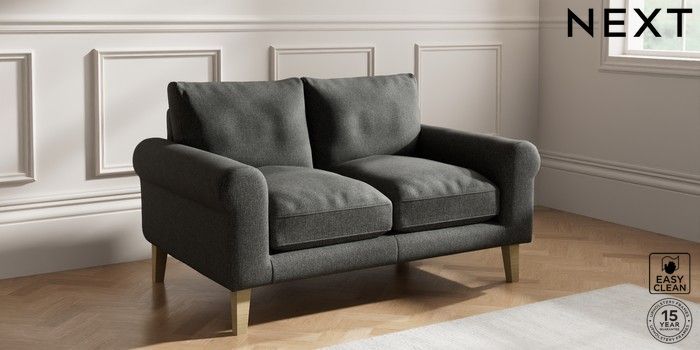 7.2.10 Palermo Relaxed Sit 2 Seater Small Sofa Tweedy Blend Easy Clean Charcoal Grey Tapered - Light | Made Click here to use our website with more accessibility support, for example screen readers