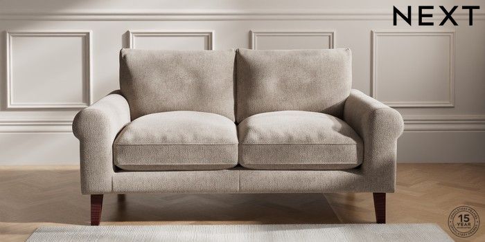7.2.10 Palermo Relaxed Sit 2 Seater Sofa Chunky Chenille Light Dove Tapered - Dark Brown | Made Click here to use our website with more accessibility support, for example screen readers