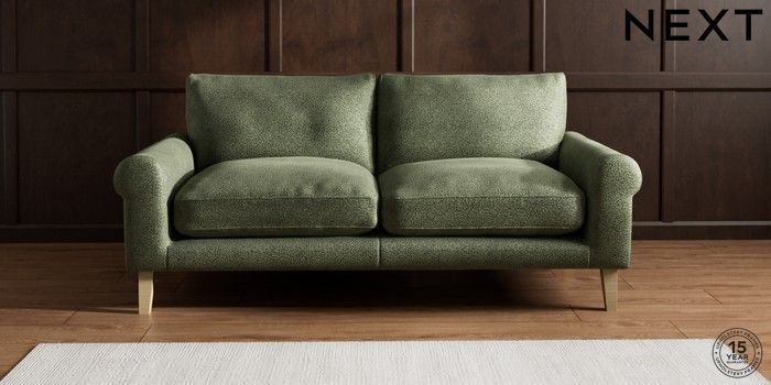 7.2.10 Palermo Relaxed Sit 3 Seater Sofa Boucle Chenille Dark Moss Green Tapered - Light | Made Click here to use our website with more accessibility support, for example screen readers