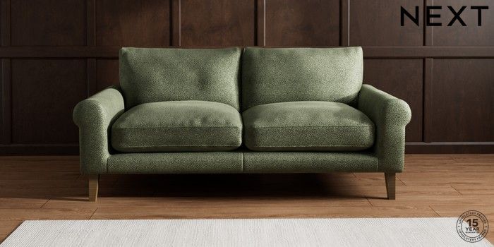 7.2.10 Palermo Relaxed Sit 3 Seater Sofa Boucle Chenille Dark Moss Green Tapered - Mid | Made Click here to use our website with more accessibility support, for example screen readers