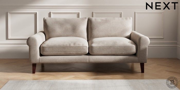 7.2.10 Palermo Relaxed Sit 3 Seater Sofa Boucle Chenille Light Natural Tapered - Dark Brown | Made Click here to use our website with more accessibility support, for example screen readers