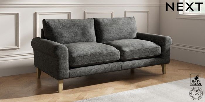 7.2.10 Palermo Relaxed Sit 3 Seater Sofa Boucle Weave Easy Clean Charcoal Grey Tapered - Light | Made Click here to use our website with more accessibility support, for example screen readers
