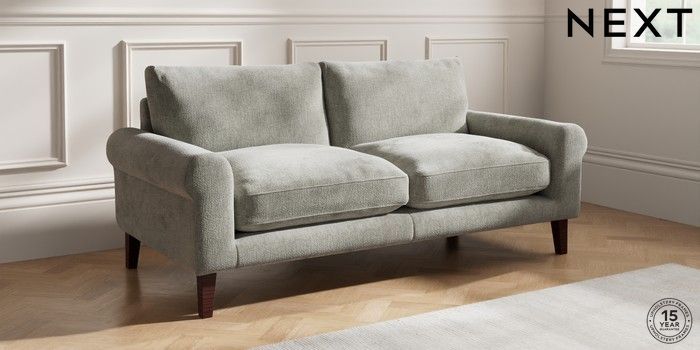 7.2.10 Palermo Relaxed Sit 3 Seater Sofa Chunky Chenille Light Grey Tapered - Dark Brown | Made Click here to use our website with more accessibility support, for example screen readers