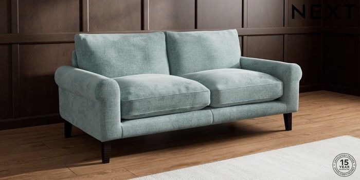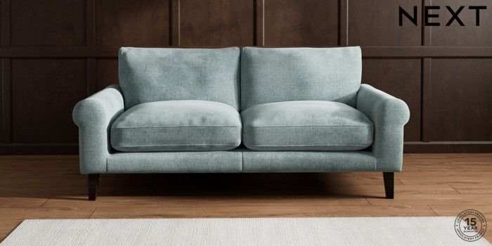 7.2.10 Palermo Relaxed Sit 3 Seater Sofa Chunky Chenille Light Teal Green Tapered - Dark | Made Click here to use our website with more accessibility support, for example screen readers