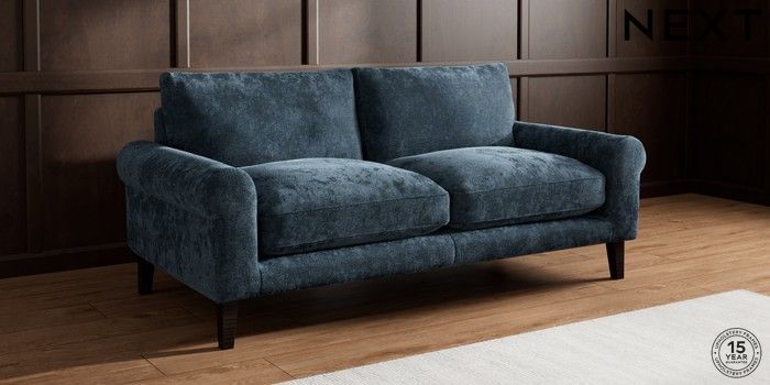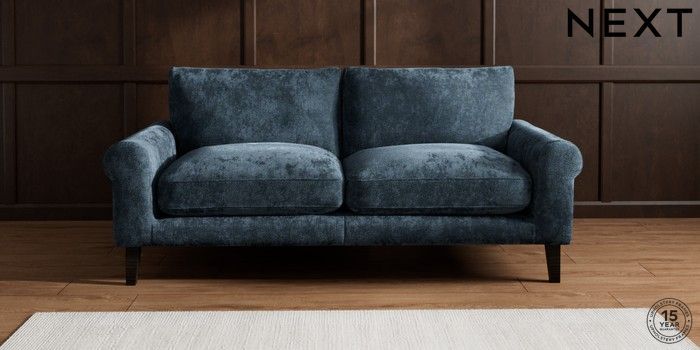 7.2.10 Palermo Relaxed Sit 3 Seater Sofa Distressed Velour Midnight Blue Tapered - Dark | Made Click here to use our website with more accessibility support, for example screen readers