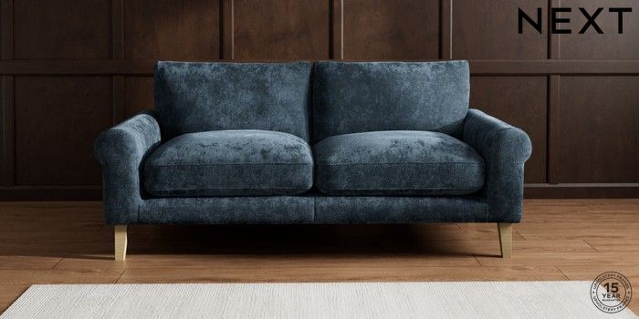 7.2.10 Palermo Relaxed Sit 3 Seater Sofa Distressed Velour Midnight Blue Tapered - Light | Made Click here to use our website with more accessibility support, for example screen readers