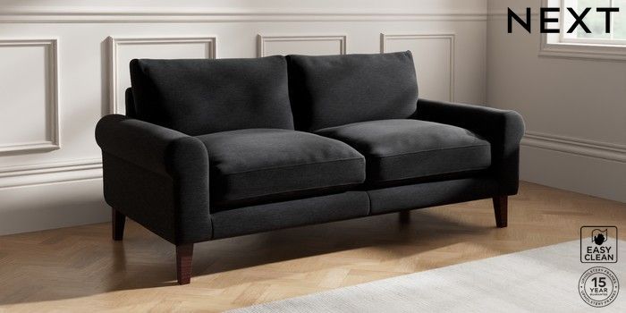 7.2.10 Palermo Relaxed Sit 3 Seater Sofa Fine Chenille Easy Clean Black Tapered - Dark Brown | Made Click here to use our website with more accessibility support, for example screen readers