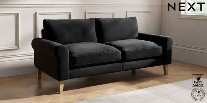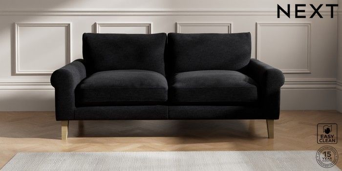 7.2.10 Palermo Relaxed Sit 3 Seater Sofa Fine Chenille Easy Clean Black Tapered - Light | Made Click here to use our website with more accessibility support, for example screen readers