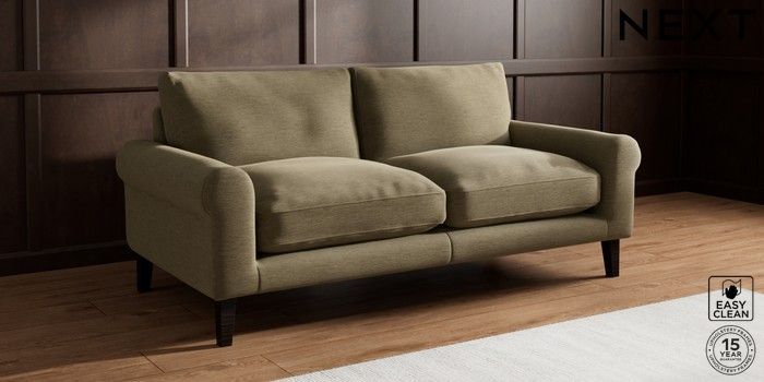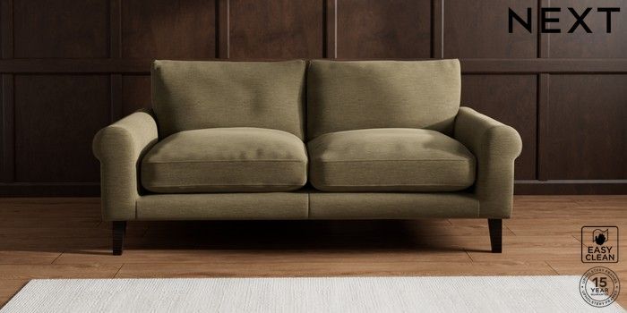 7.2.10 Palermo Relaxed Sit 3 Seater Sofa Fine Chenille Easy Clean Dark Moss Green Tapered - Dark | Made Click here to use our website with more accessibility support, for example screen readers