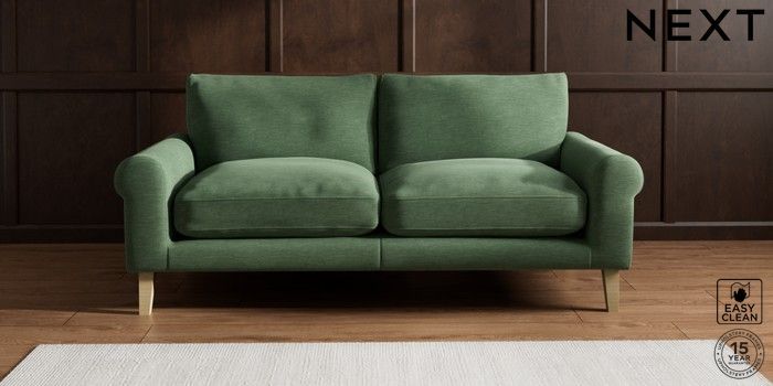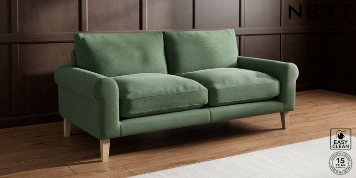 7.2.10 Palermo Relaxed Sit 3 Seater Sofa Fine Chenille Easy Clean Mid Khaki Green Tapered - Light | Made Click here to use our website with more accessibility support, for example screen readers