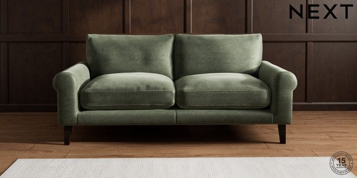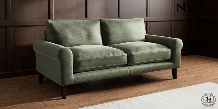 7.2.10 Palermo Relaxed Sit 3 Seater Sofa Luxe Chenille Mid Green Tapered - Dark | Made Click here to use our website with more accessibility support, for example screen readers
