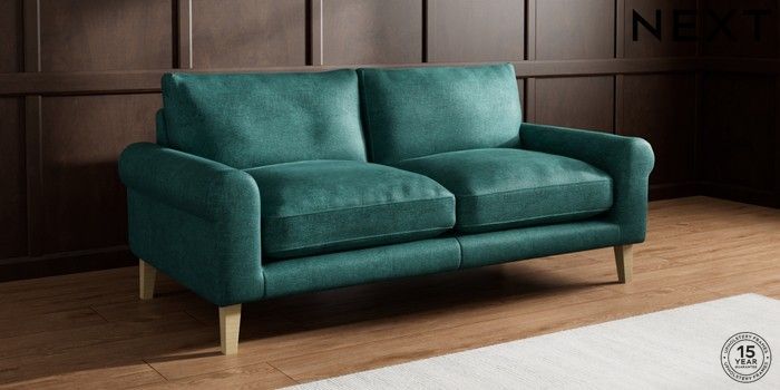 7.2.10 Palermo Relaxed Sit 3 Seater Sofa Plush Chenille Dark Teal Green Tapered - Light | Made Click here to use our website with more accessibility support, for example screen readers