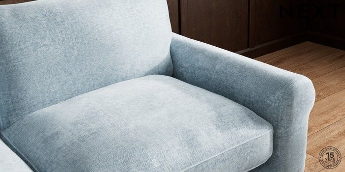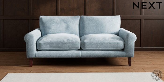 7.2.10 Palermo Relaxed Sit 3 Seater Sofa Plush Chenille Light Blue Tapered - Dark Brown | Made Click here to use our website with more accessibility support, for example screen readers