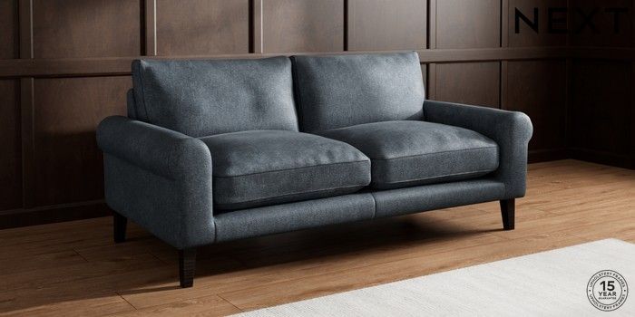 7.2.10 Palermo Relaxed Sit 3 Seater Sofa Plush Chenille Slate Blue Tapered - Dark | Made Click here to use our website with more accessibility support, for example screen readers