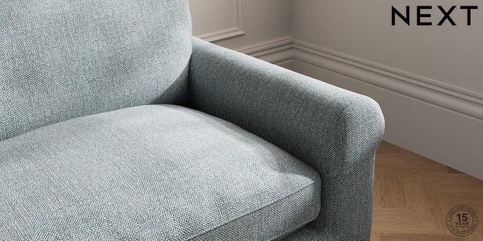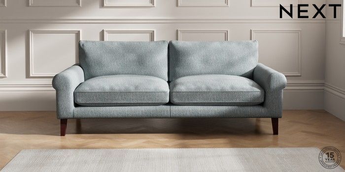 7.2.10 Palermo Relaxed Sit 4 Seater Sofa Chunky Weave Mid Blue Tapered - Dark Brown | Made Click here to use our website with more accessibility support, for example screen readers