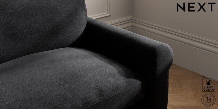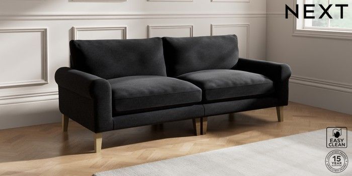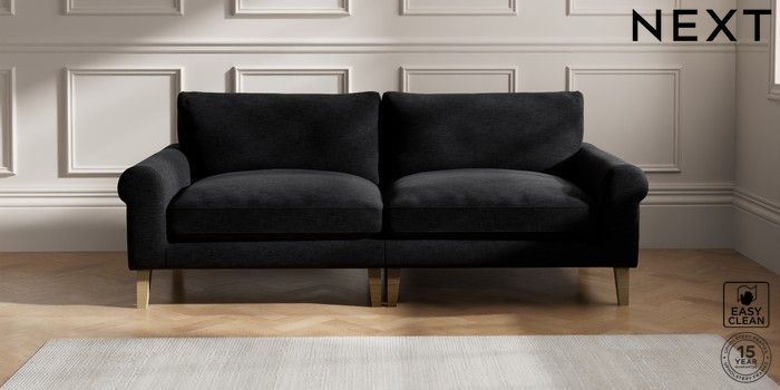 7.2.10 Palermo Relaxed Sit 4 Seater Sofa Fine Chenille Easy Clean Black Tapered - Light | Made Click here to use our website with more accessibility support, for example screen readers