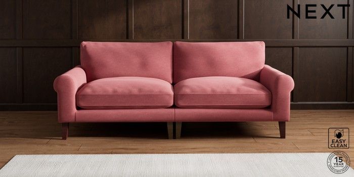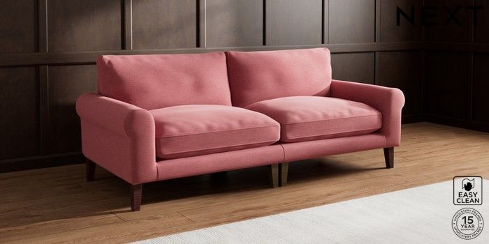 7.2.10 Palermo Relaxed Sit 4 Seater Sofa Fine Chenille Easy Clean Mid Pink Tapered - Dark Brown | Made Click here to use our website with more accessibility support, for example screen readers
