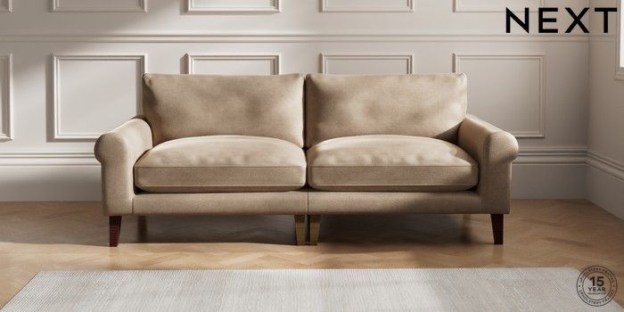 7.2.10 Palermo Relaxed Sit 4 Seater Sofa Luxe Chenille Mid Camel Beige Tapered - Dark Brown | Made Click here to use our website with more accessibility support, for example screen readers
