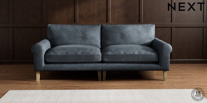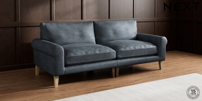 7.2.10 Palermo Relaxed Sit 4 Seater Sofa Plush Chenille Slate Blue Tapered - Light | Made Click here to use our website with more accessibility support, for example screen readers