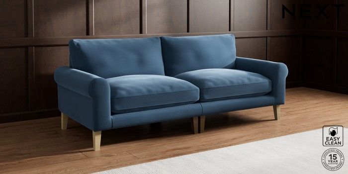 7.2.10 Palermo Relaxed Sit 4 Seater Sofa Plush Velvet Easy Clean Airforce Blue Tapered - Light | Made Click here to use our website with more accessibility support, for example screen readers
