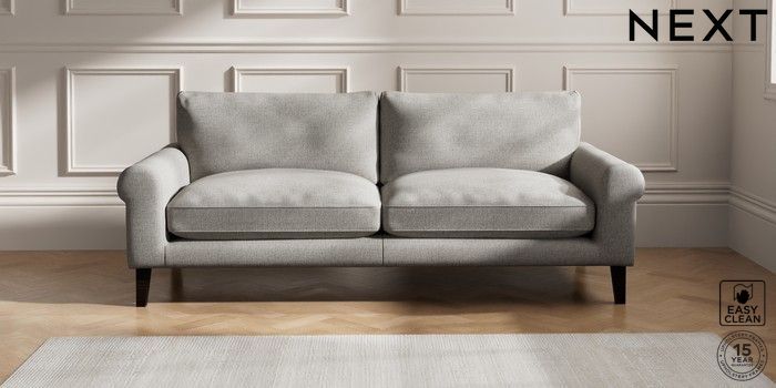 7.2.10 Palermo Relaxed Sit 4 Seater Sofa Woven Chenille Easy Clean Light Grey Tapered - Dark | Made Click here to use our website with more accessibility support, for example screen readers