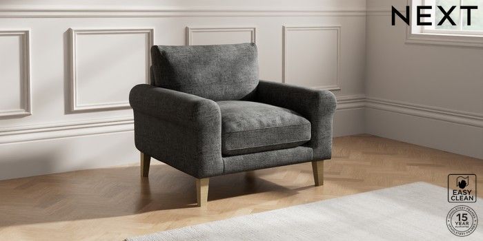 7.2.10 Palermo Relaxed Sit Armchair Boucle Weave Easy Clean Charcoal Grey Tapered - Light | Made Click here to use our website with more accessibility support, for example screen readers