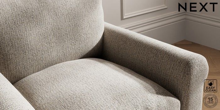 A chunky, hardwearing fabric with a timeless look which can tackle most household stains by blotting or gently wiping the fabric with water and a mild detergent. This Fabric is covered by the Quality Fabric Kitemark