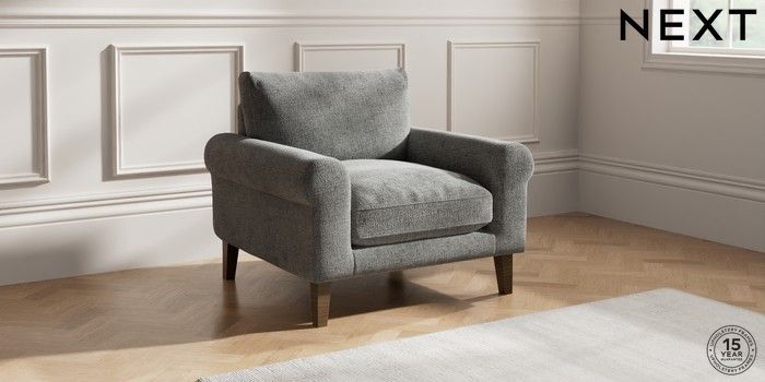 7.2.10 Palermo Relaxed Sit Armchair Chunky Chenille Dark Grey Tapered - Mid | Made Click here to use our website with more accessibility support, for example screen readers