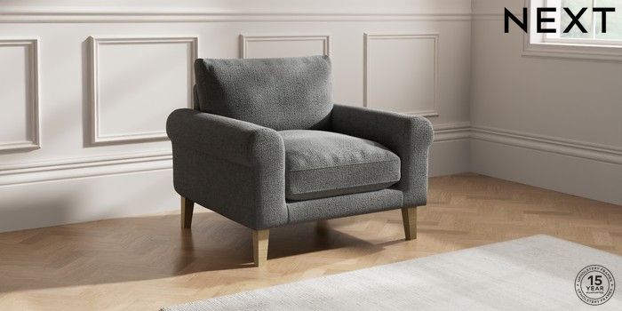 7.2.10 Palermo Relaxed Sit Armchair Chunky Texture Dark Grey Tapered - Light | Made Click here to use our website with more accessibility support, for example screen readers