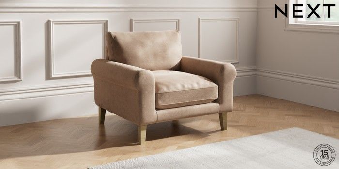 7.2.10 Palermo Relaxed Sit Armchair Luxe Chenille Mid Natural Tapered - Light | Made Click here to use our website with more accessibility support, for example screen readers