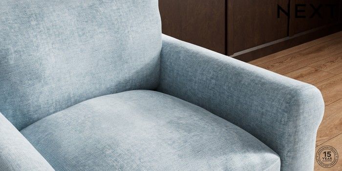 7.2.10 Palermo Relaxed Sit Armchair Plush Chenille Light Blue Tapered - Dark Brown | Made Click here to use our website with more accessibility support, for example screen readers