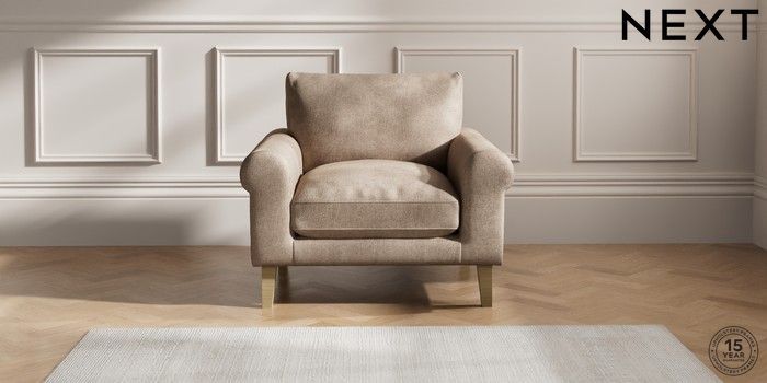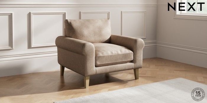 7.2.10 Palermo Relaxed Sit Armchair Plush Chenille Mid Natural Tapered - Light | Made Click here to use our website with more accessibility support, for example screen readers