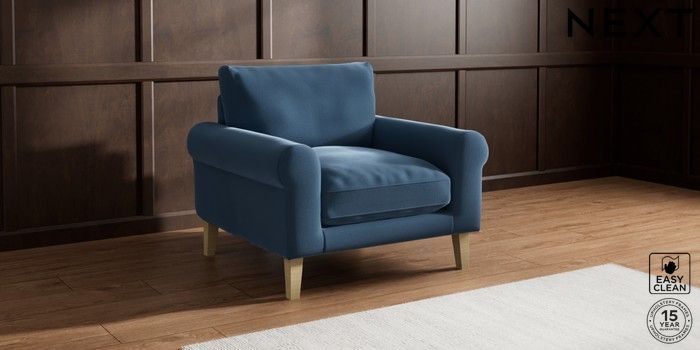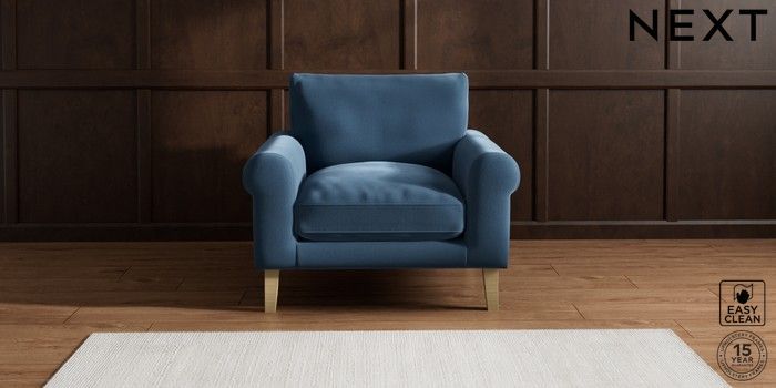 7.2.10 Palermo Relaxed Sit Armchair Plush Velvet Easy Clean Airforce Blue Tapered - Light | Made Click here to use our website with more accessibility support, for example screen readers