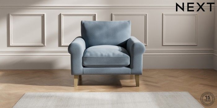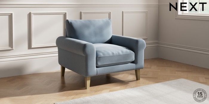 7.2.10 Palermo Relaxed Sit Armchair Relaxed Linen Look Mid Blue Tapered - Light | Made Click here to use our website with more accessibility support, for example screen readers
