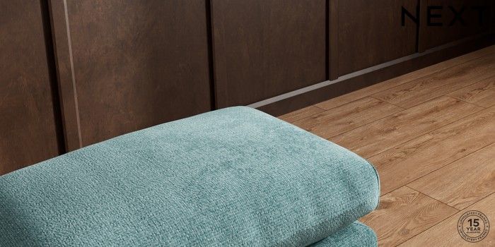 7.2.10 Palermo Relaxed Sit Footstool Chunky Chenille Mid Teal Green Tapered - Dark Brown | Made Click here to use our website with more accessibility support, for example screen readers