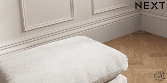 7.2.10 Palermo Relaxed Sit Footstool Chunky Chenille Oyster Tapered - Light | Made Click here to use our website with more accessibility support, for example screen readers