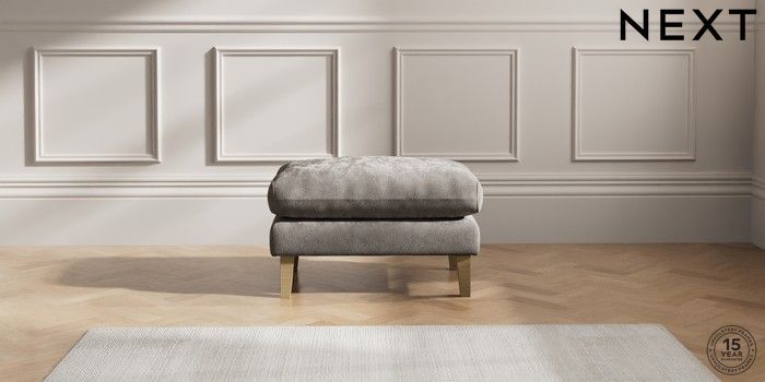 7.2.10 Palermo Relaxed Sit Footstool Distressed Velour French Grey Tapered - Light | Made Click here to use our website with more accessibility support, for example screen readers