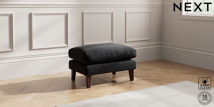 7.2.10 Palermo Relaxed Sit Footstool Fine Chenille Easy Clean Black Tapered - Dark Brown | Made Click here to use our website with more accessibility support, for example screen readers