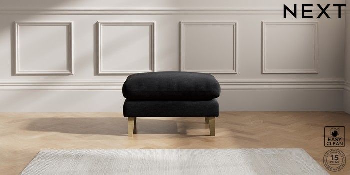 7.2.10 Palermo Relaxed Sit Footstool Fine Chenille Easy Clean Black Tapered - Light | Made Click here to use our website with more accessibility support, for example screen readers