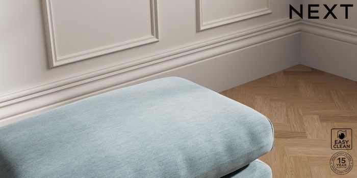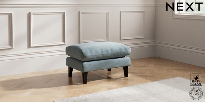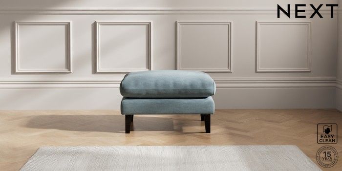 7.2.10 Palermo Relaxed Sit Footstool Fine Chenille Easy Clean Mid Blue Tapered - Dark | Made Click here to use our website with more accessibility support, for example screen readers