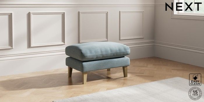 7.2.10 Palermo Relaxed Sit Footstool Fine Chenille Easy Clean Mid Blue Tapered - Light | Made Click here to use our website with more accessibility support, for example screen readers
